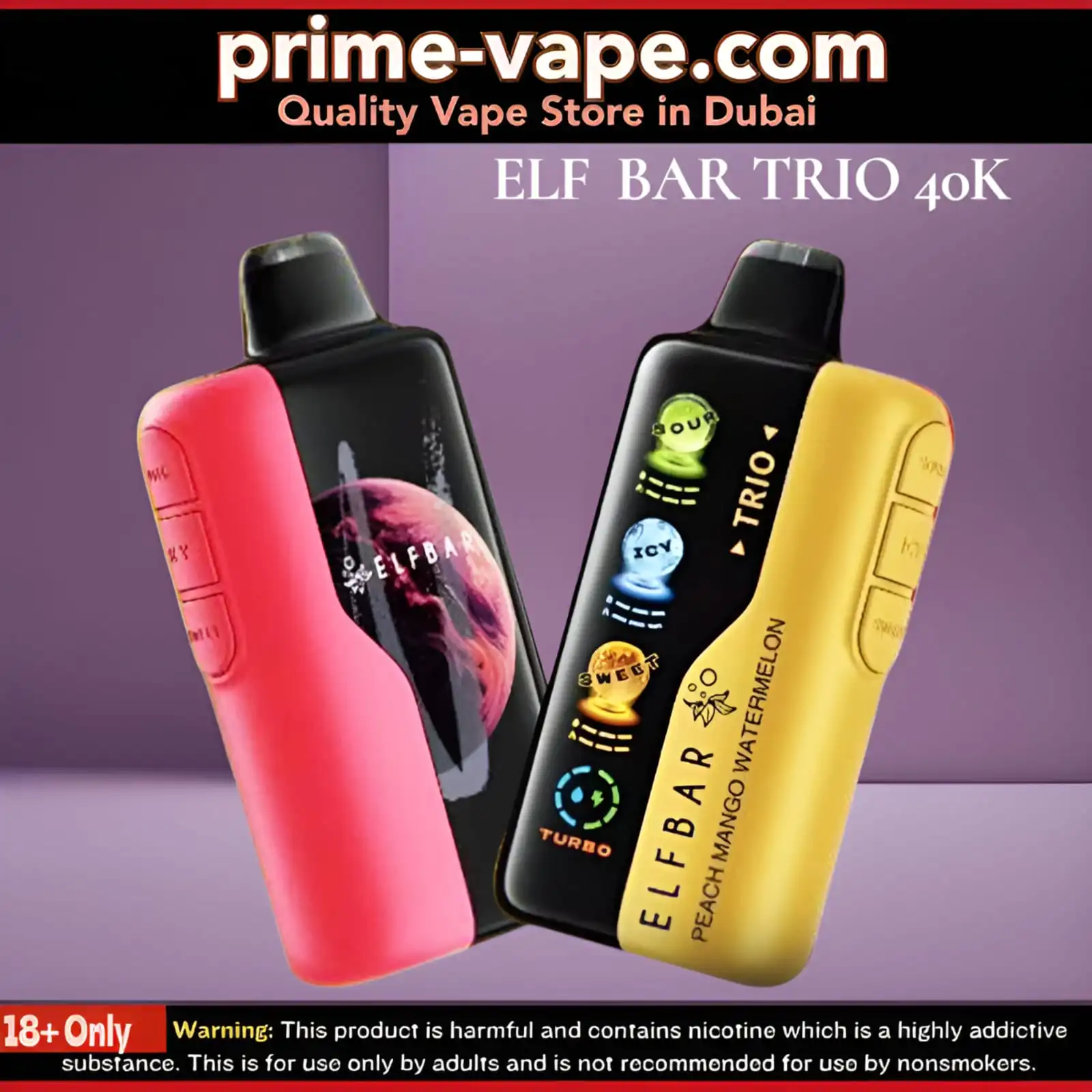 All vaping products, including the Elf Bar Trio 40000 Puffs Disposable Vape, are restricted to adults aged 18 years and above. Proper age verification is required for all purchases in accordance with UAE regulations.